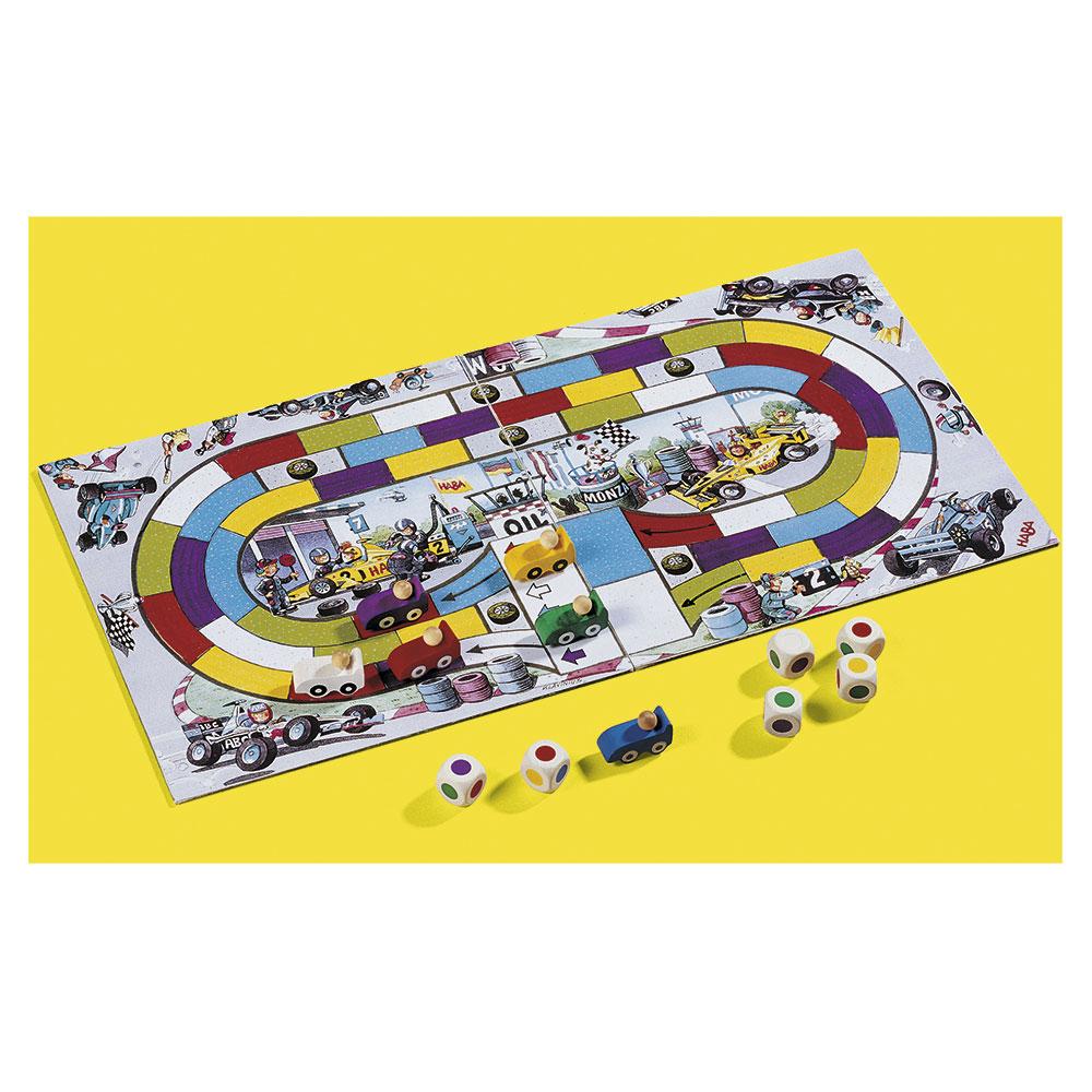 En este divertido juego de mesa de HABA, cada jugador tira los dados de colores y avanza su coche según las casillas que coincidan, buscando siempre la mejor combinación para llegar primero a la meta.